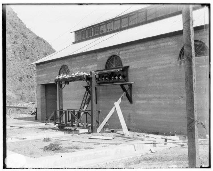 The exterior of Mill Creek #2 Hydro Plant prior to the construction of Mill Creek #3 Hydro Plant, ca. 1899.