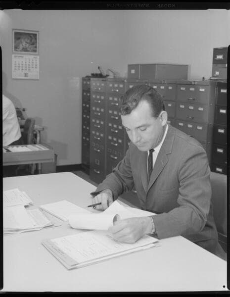 [Office workers in Edison office - (records center?)] [with 5 variants]