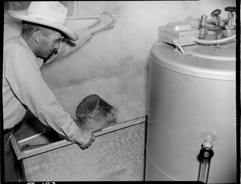 Dairy Booklet photos - A. Bader - Artesia - loading sterilizing box.