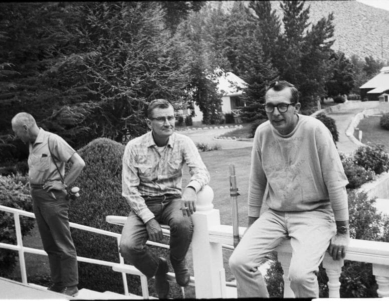 [Men riding the cable incline-rail car to Agnew and Gem Lakes and fishing at the reservoirs [with 52 variants]
