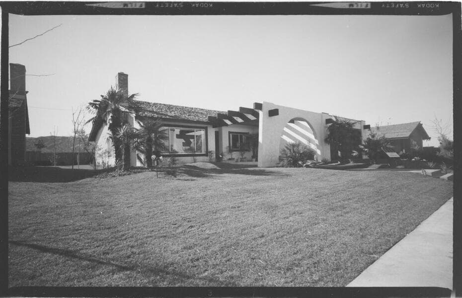 [New, large all-electric home with a young lady posing in various rooms - interior & exterior [with 42 variants (1 is on 4x5 film)]