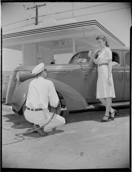 Sunkist - Union Oil Stand - Downey - washing glasses.