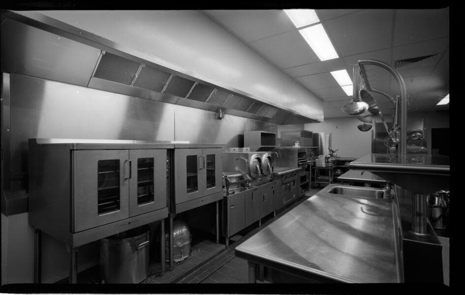 [Commercial or institutional kitchen with gas appliances] [with 5 variants]
