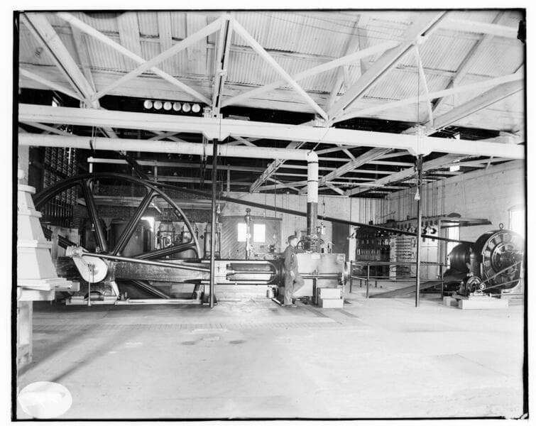 An interior view of the Los Angeles #1 Steam Plant. [as it appeared in 1902, before its conversion to a substation]