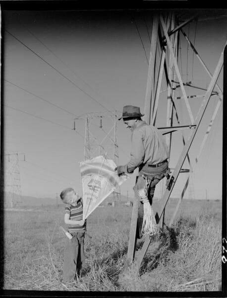 Electrical Times Cover - Picnic scene, Kenyons boys, Bob Campbell. [boys are carrying a Westinghouse cooker up a grassy slope]