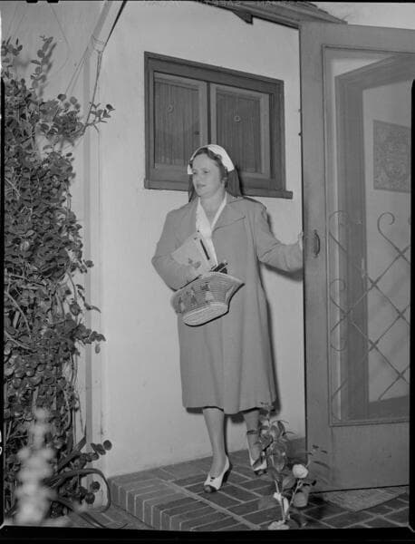 Suset ad. - Mrs. J. A. Coulter - Covina - leaving house.