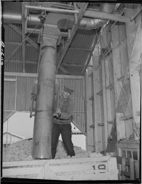 Electric Industry - Tulare Cotton Gin - Tulare - cotton buyer sampling bales.