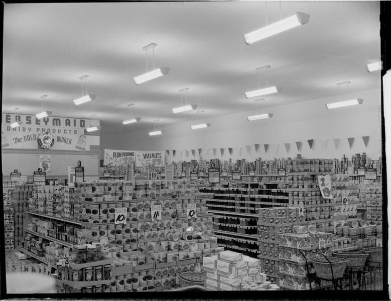 Lighting - Von's Market - Lynwood - close-up grocery clerk stocking shelves.