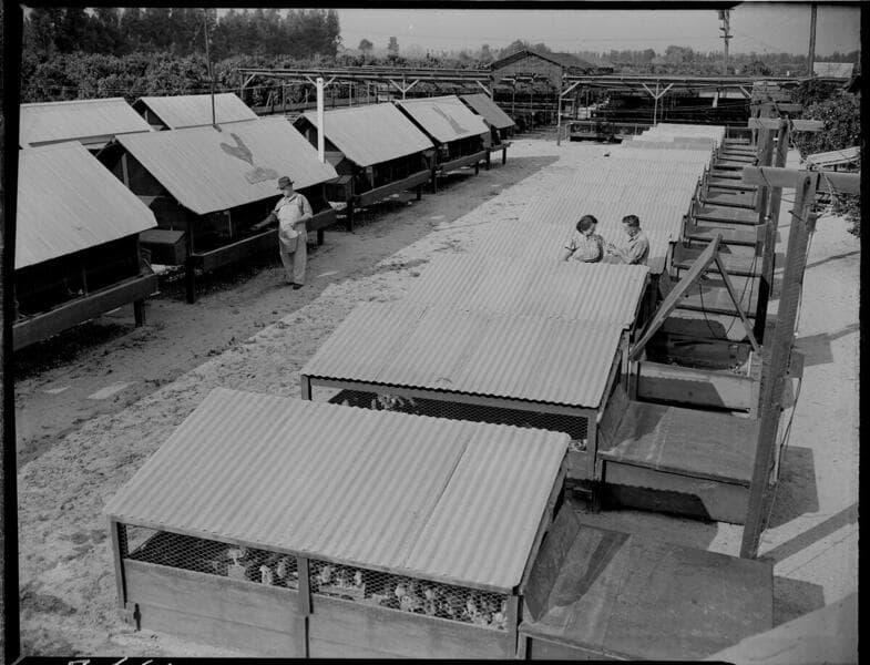 Agriculture, poultry - Pollard Poultry Ranch, Santa Ana - breeding pens.