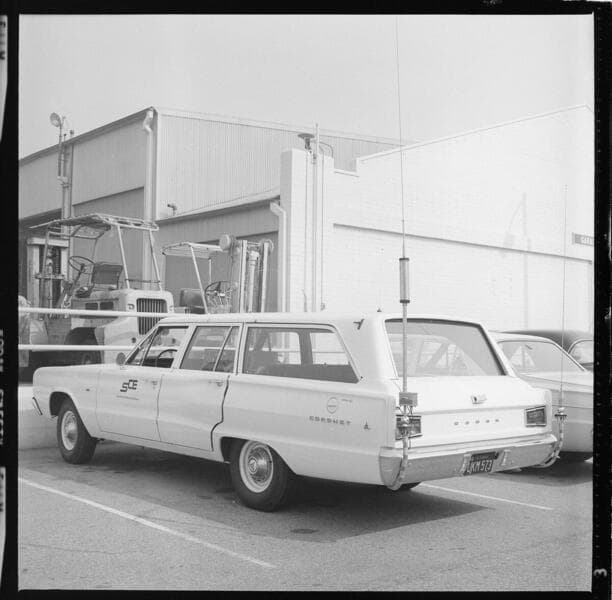 SCE vehicle with radio communication equipment. ; Woman receiving award. ; Shop scenes