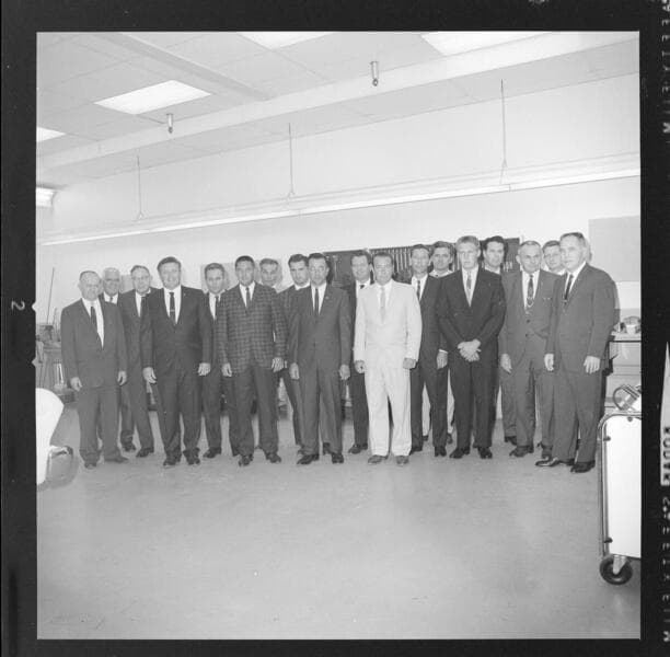 [Men reviewing plans for an 18 story apartment building] [with 11 variants]