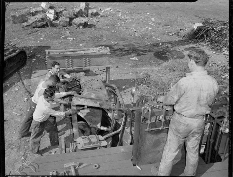 Electric Industry - A-1 Iron & Metals - crane with car body.