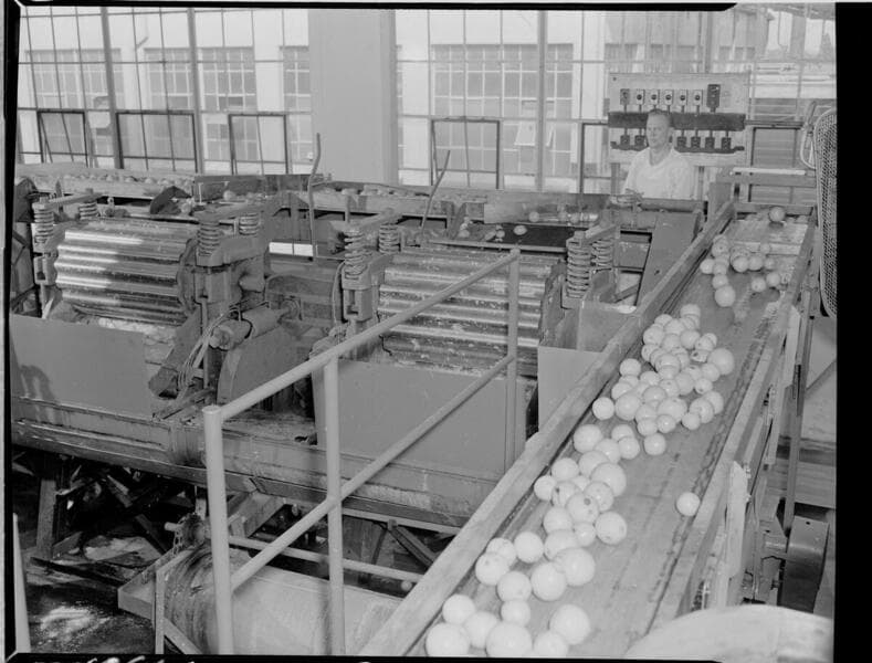 Exchange Orange Products Co. - Woman posing in front of boxes of oranges and holding a can of juice