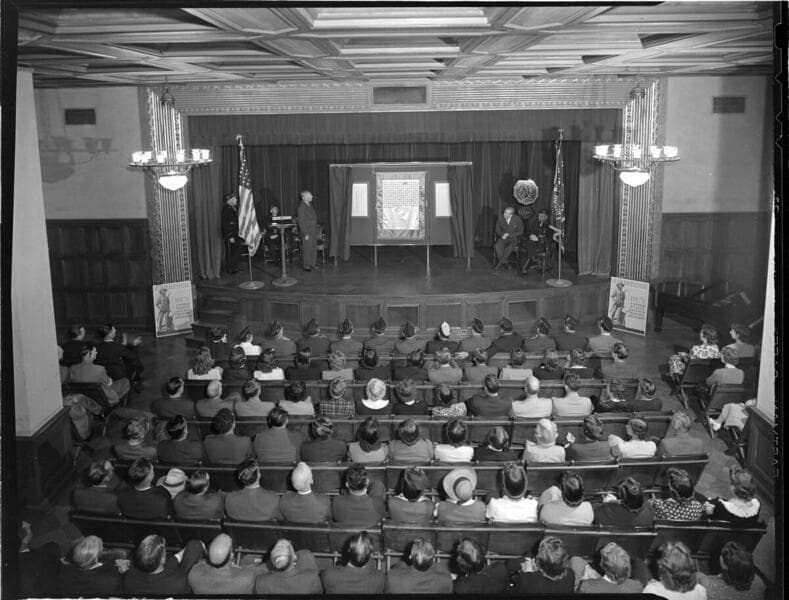 Service flag dedication in Edison G.O. auditorium - Mr. Mullendore talking.