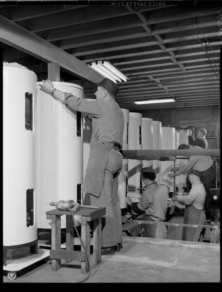 Electrical Times Cover - Picnic scene, Kenyons boys, Bob Campbell. [boys are carrying a Westinghouse cooker up a grassy slope]