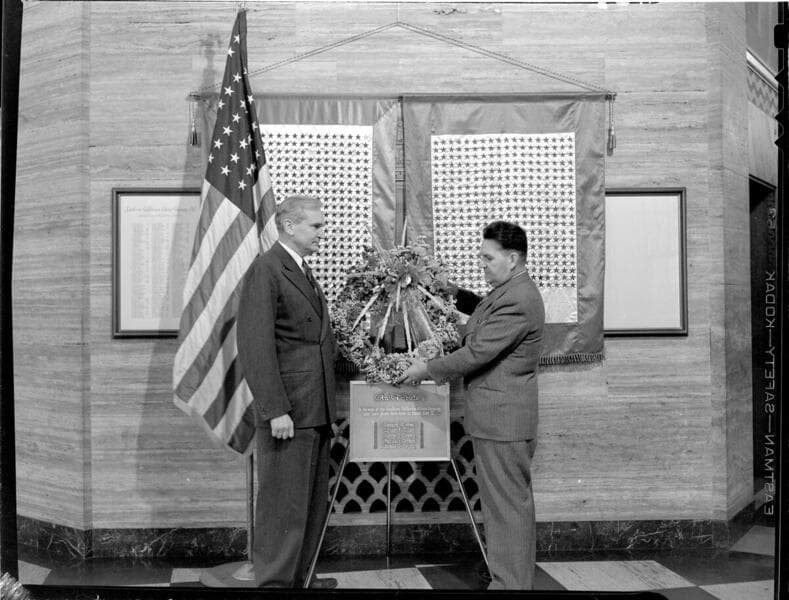 Service flag dedication in Edison G.O. auditorium - Mr. Mullendore talking.