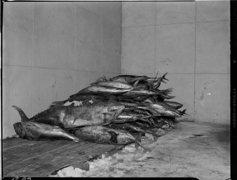 Industrial Misc. - Great Western Seafood Co. - commercial fishing boat unloading catch at dock.