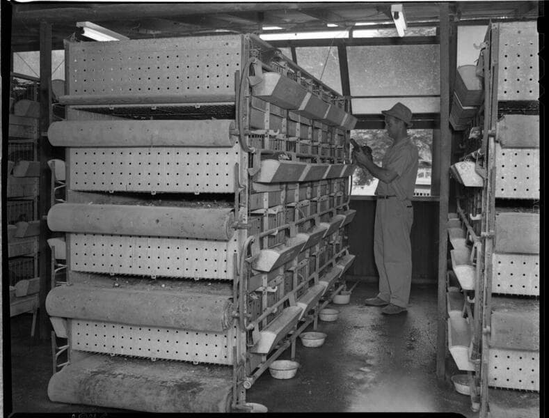 Agriculture Poultry - Arcadia Farms - stacked brooder pens.