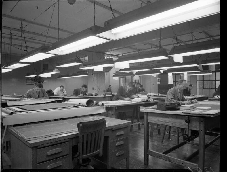 L1.1 - Lighting, misc. - Industrial Lighting - Drafting Room of Vultee Aircraft - Norwalk.