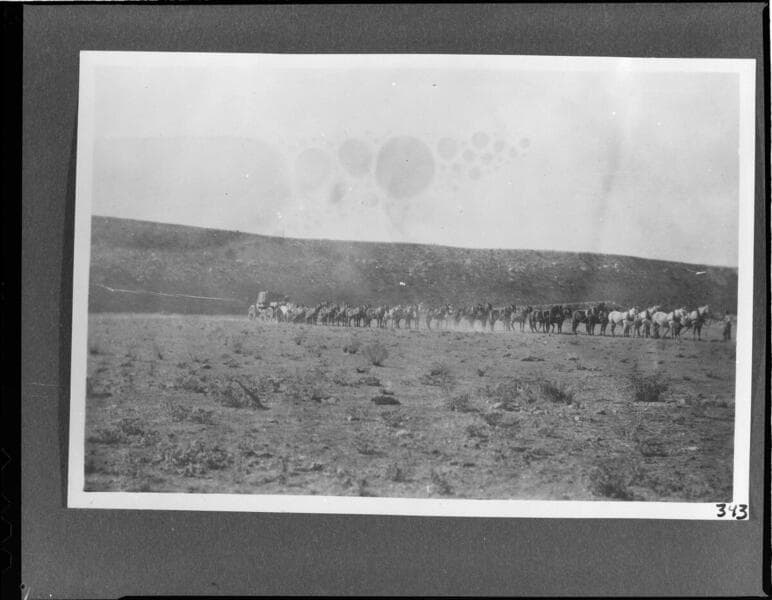 Kern River #1 - Rotor being hauled by a 30-horse team at the mouth of Kern River Canyon.