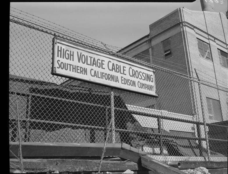 Distribution - Laying submarine cable in Long Beach channel - men pulling cable on shore.