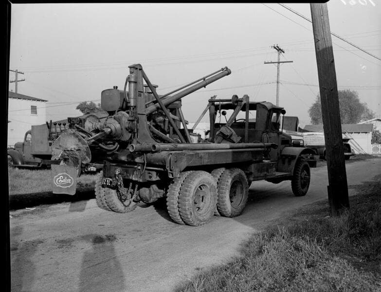 Chino-Barre Transmission Line - construction - [men excavating hole with auger at tower site]