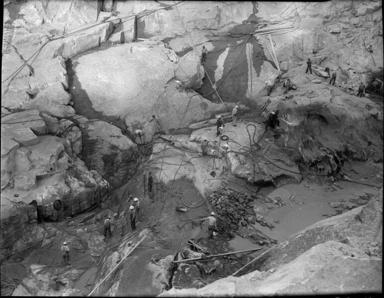 Big Creek 4 construction work - [Excavation at Dam 7 construction site]