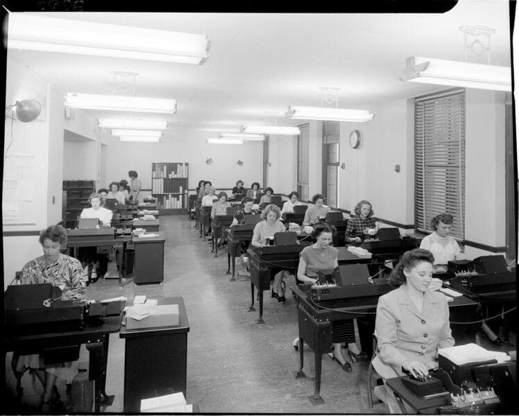 Personalities - Pay Roll Division [IBM check printing machine using "key punch" cards as data source]