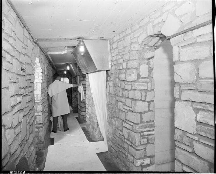 Commercial Lighting - Arrowhead Springs Hotel. [man operating a lithograph machine in a print shop]