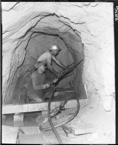 Big Creek Powerhouse #4 - Construction pictures taken by Dam & Tunnel Office. [Hard rock miners drilling in Power Tunnel #2]