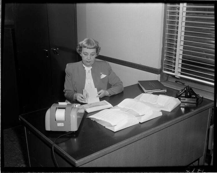 Personalities - Pay Roll Division [IBM check printing machine using "key punch" cards as data source]