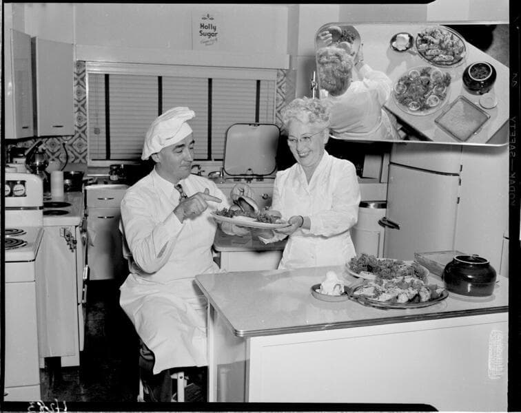 Cooking demonstration to audience.