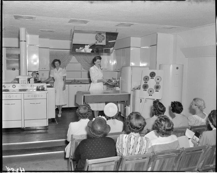 Women demonstrating Medallion Home electric cooking equipment at a promotional event - [with 23 variants]