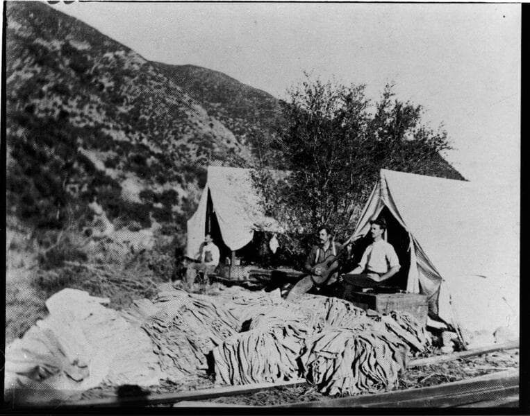 Cottage at Mill Creek #1 Hydro Plant, showing people sitting outside.