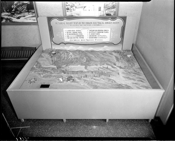 3D relief map display of Sierra Nevada's and all existing Big Creek facilities.