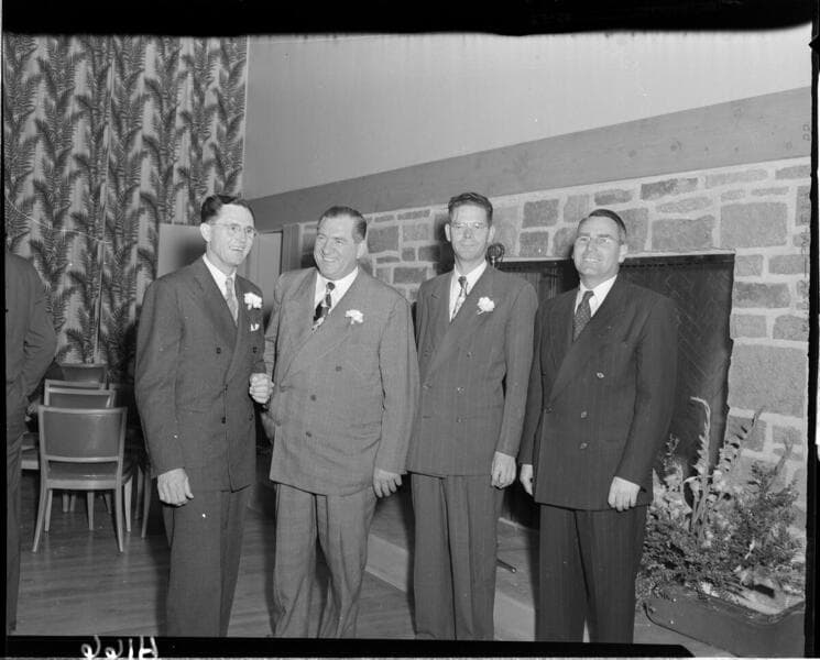 Dedication of new Big Creek Recreation Hall - 4 men, no one talking.