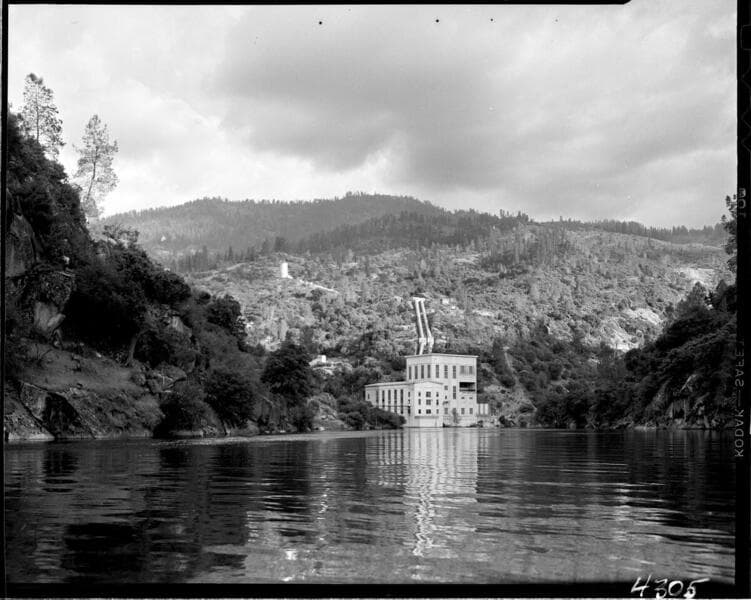 View of Big Creek Powerhouse #1 from across the forebay at waters edge