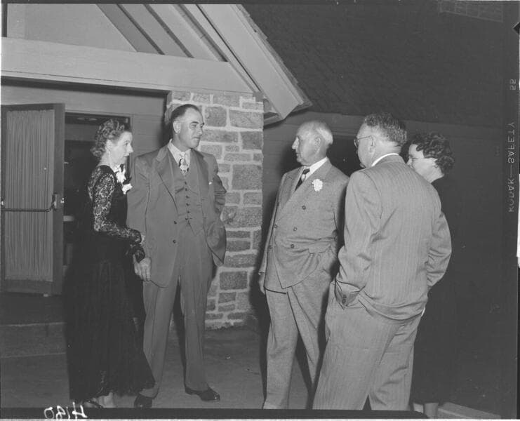 Dedication of new Big Creek Recreation Hall - 4 men, no one talking.