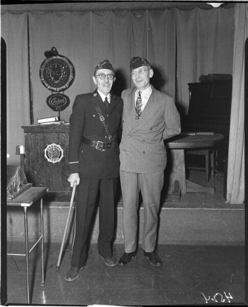 Two men in uniform at Edison American Legion meeting