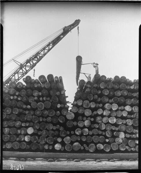 General Store, Pole Yard - Alhambra Pole Yard viewed from tower - Poles and Oil Tanks for pole treating plant.