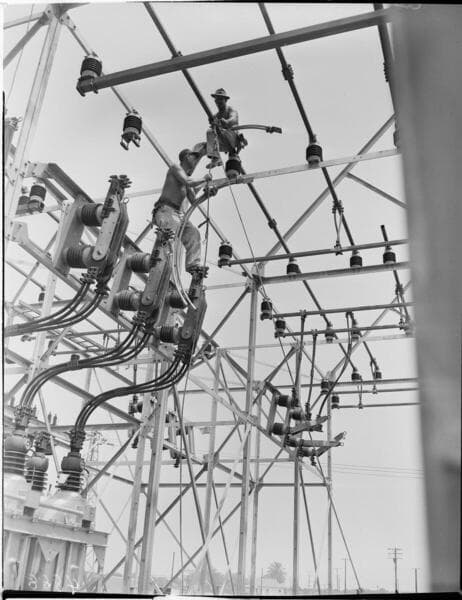 Kern River No. 3 - Switchrack or dead-end on roof of Kern 3 Powerhouse