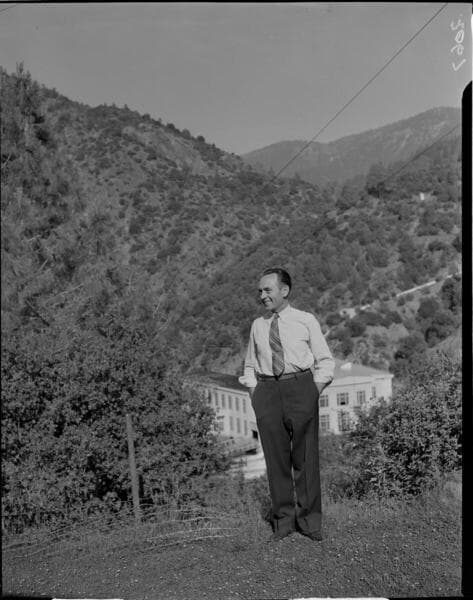 Personalities - F.L. Bower - overhead view - standing next to generator at Powerhouse #1, 2 or 2A