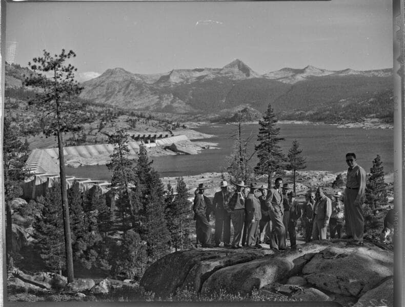 Big Creek Valley Editors Tour: group at Florence Lake Dam