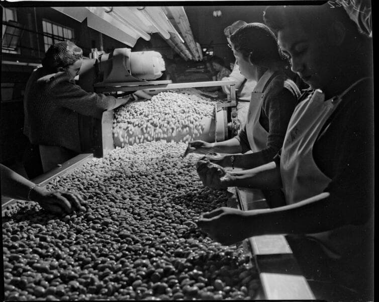 Electrified industry - sorting lima beans - Ventura Farms Plant, Oxnard.