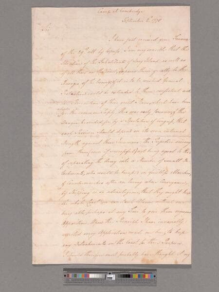 Letter from George Washington, camp at Cambridge, Massachusetts, to Nathaniel Woodhull?