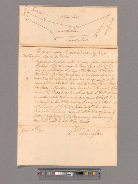 Survey by George Washington of 183 acres of land in Frederick County claimed by Washington