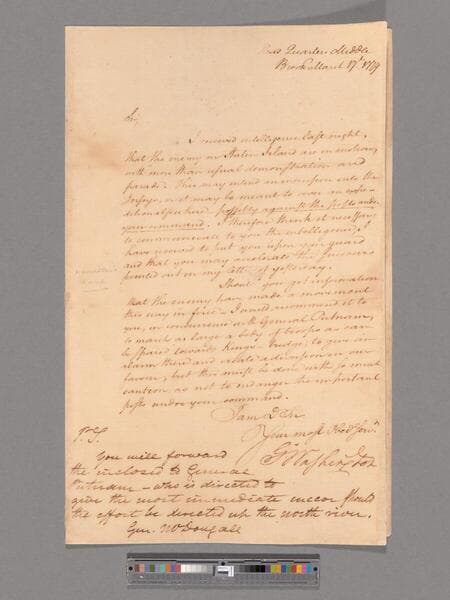 Letter from George Washington, headquarters Middlebrook, to Major General Alexander McDougall