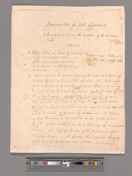 Memoranda by James Duane for Colonel John Laurens, Philadelphia