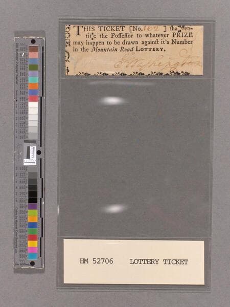 Signature of George Washington on ticket for the Mountain Road Lottery, Number 237