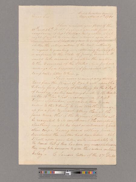 Letter from George Washington, headquarters Middlebrook, to Major General Alexander McDougall